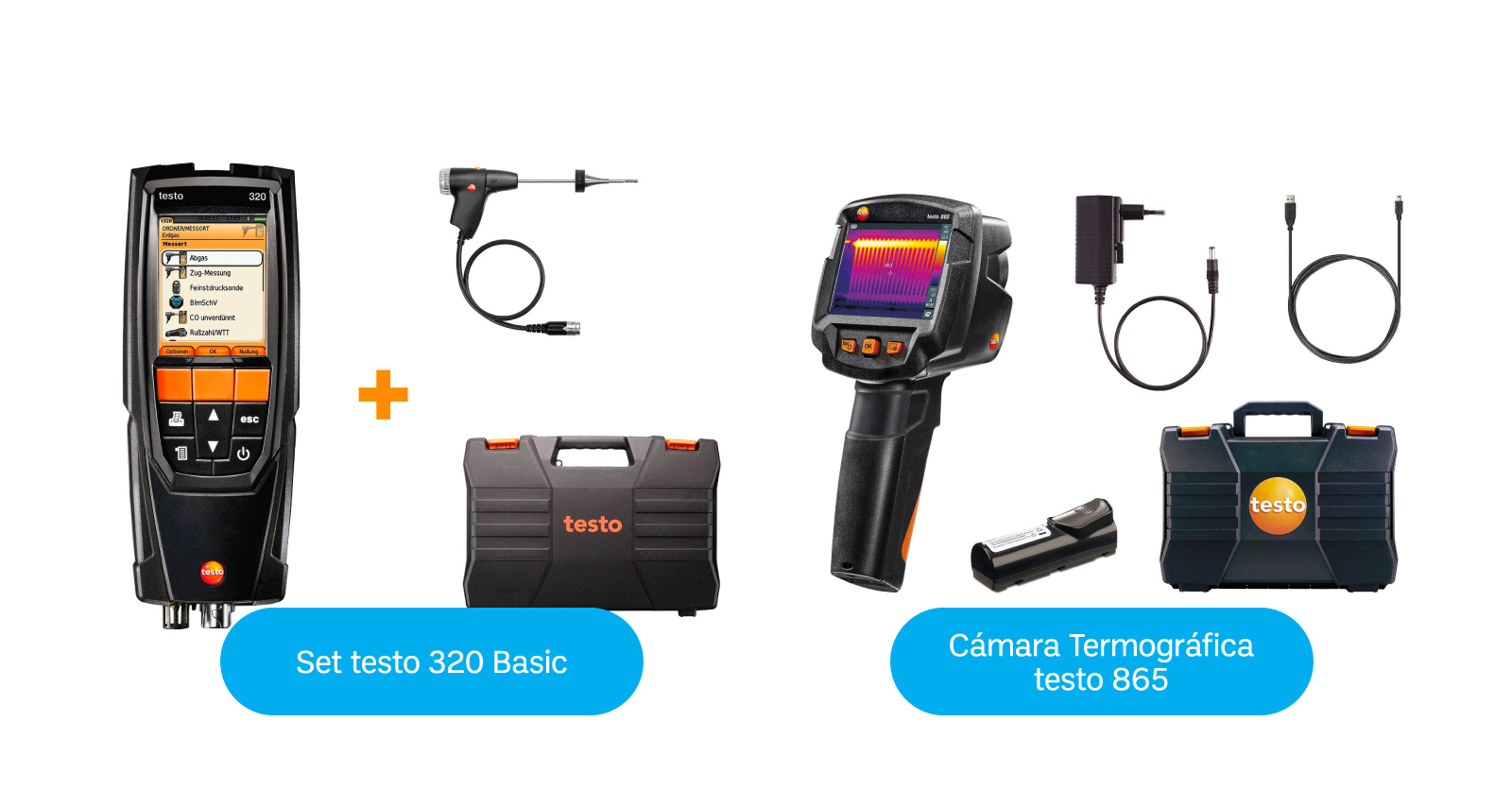 Por la compra de un analizador de combustión testo 320 Basic y/o la cámara termográfica testo 865, llévese gratis un set de equipos Testo para la medición de parámetros eléctricos o 120 euros para su próxima compra*.