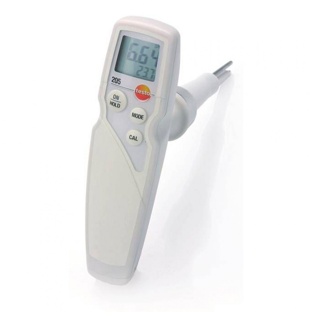 Con este instrumento de medición, comprobará el valor de pH y la temperatura. La robusta punta de medición permite mediciones en medios semisólidos, como por ejemplo en piezas de carne.