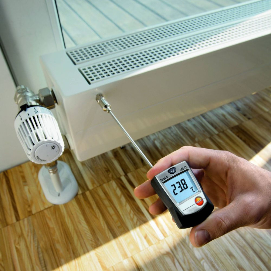 El termómetro de superficie testo 905-T2 destaca también por su amplio rango de medición de -50 … +350 °C. Durante períodos breves incluso mediciones de hasta +500 °C (de 1 a 2 minutos). Gracias a su amplio rango de medición, este termómetro se puede utilizar en múltiples aplicaciones, p. ej., en el sector de la calefacción, sanitario (mantenimiento) y refrigeración. El termómetro de superficie es especialmente adecuado para las mediciones de temperatura en tuberías porque su banda termopar flexible se adapta perfectamente a la curvatura del conducto.