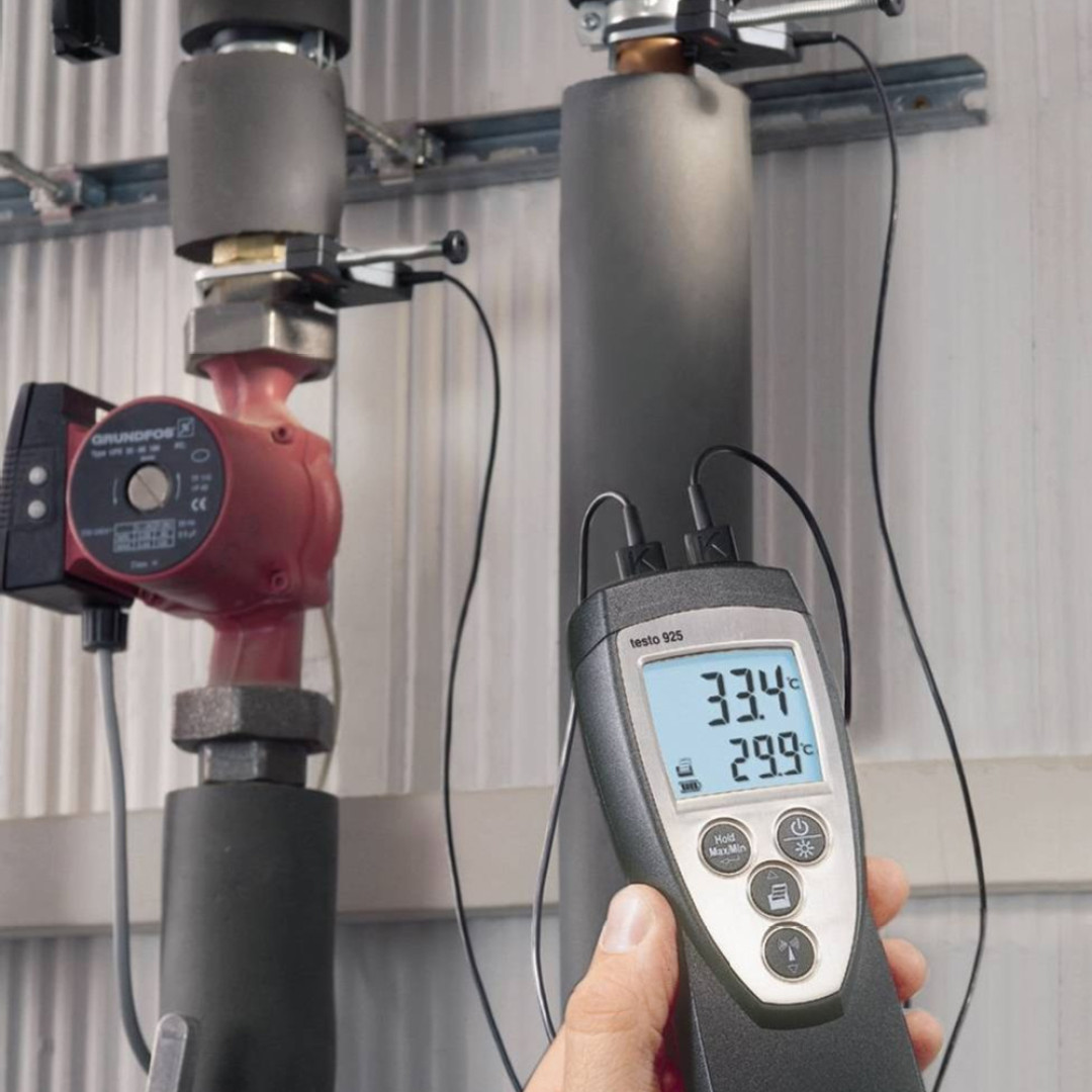 Medición de la temperatura, registro de hasta tres sensores de temperatura, indicación directa de la temperatura diferencial: el termómetro de 2 canales testo 922 es óptimo para el uso en cualquier aplicación del sector HVAC.